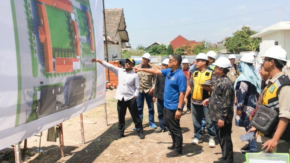 Wali Kota Kediri Abdullah Abu Bakar meninjau pembangunan tahap II SMPN 9 Kediri, disela telah difungsikannya hasil tahap I, Jumat (1/9/2023). Foto : Bagian Protokol dan Komunikasi Pimpinan Sekretariat Daerah Kota Kediri