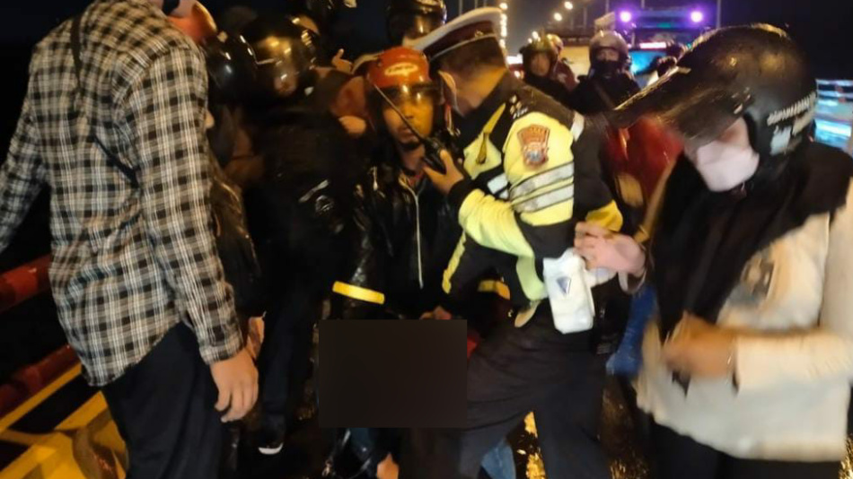 Iptu Henry menjelaskan, sejumlah pengendara yang sedang melintas juga sempat berhenti dan membujuk perempuan ini agar turun dari atas pagar jembatan.