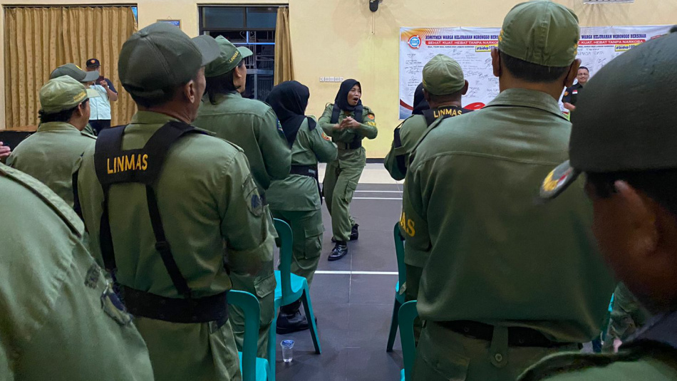 Dalam kegiatan ini, sebanyak 54 Satlinmas dari perwakilan setiap RW mengikuti pembinaan tersebut. Satlinmas Kelurahan Ngronggo secara swadaya melakukan kegiatan pengamanan.