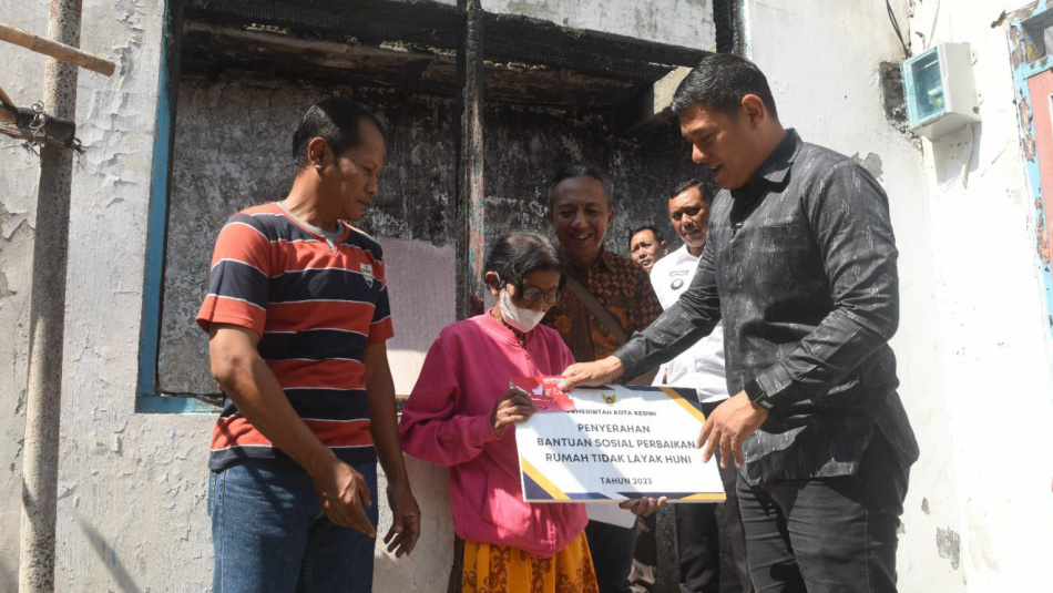 “Ini Ibu Marsiana dan Ibu Rini dapat bantuan dari Pemerintah Kota Kediri untuk perbaikan rumah. Rumah ini akan dibangun sesegera mungkin,” terang Wali Kota Kediri.