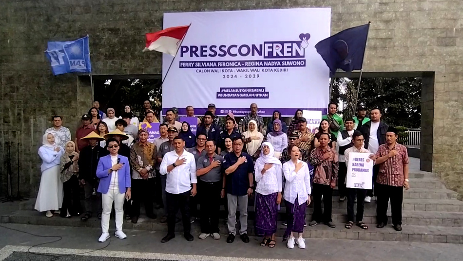 Pasangan Bakal Calon Walikota dan Wakil Walikota Kediri, Ferry Silviana Feronica (Bunda Fey) dan Regina Nadya Suwono melakukan deklarasi menghadapi Pilkada 2024, di Memorial Park, Kota Kediri, Kamis (22/08/2024). Foto : A Rudy Hertanto