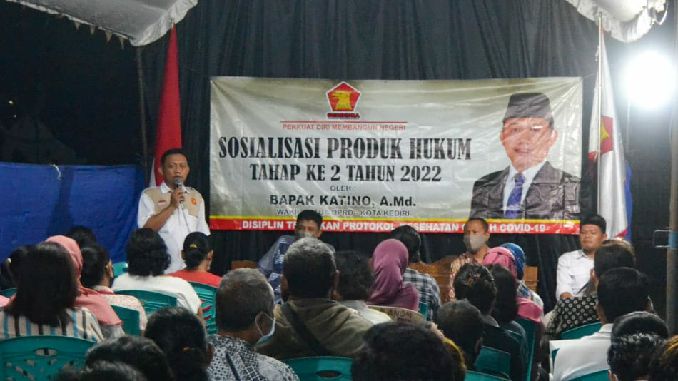 Hal itu diungkapkan Sekretaris Dinas Sosial (Dinsos) Kota Kediri, Hardyanto Heru Cahyono saat menjadi narasumber pada kegiatan Sosialisasi Produk Hukum (SPH) Tahap ke 2 Tahun 2022 kepada masyarakat, digelar Wakil Ketua DPRD Kota Kediri, Katino (akrab disapa Mas Tino) di wilayah Kelurahan Ringinanom, Kecamatan Kota, Kota Kediri, Senin (24/1/2022) malam.