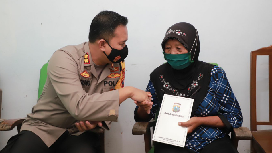 Kapolres Kediri mengatakan, pemberian bingkisan berupa sembako dan sedikit uang itu sebagai bentuk penghargaan kepada Mbah Poninten yang sudah berani melawan penjahat.